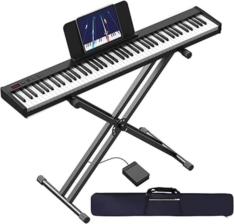 Unbranded • 88 Key Semi Weighted Keyboard Piano, Full Size Piano with Double X Stand, Portable Keyboard Piano for Beginner Include Sustain Pedal, Power Supply and Piano Bag - Black • Keys & Synths